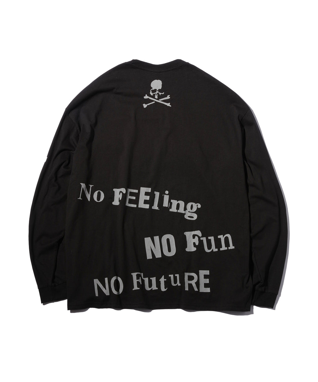 - Back print featuring the phrase “No feeling, no fun, no future”